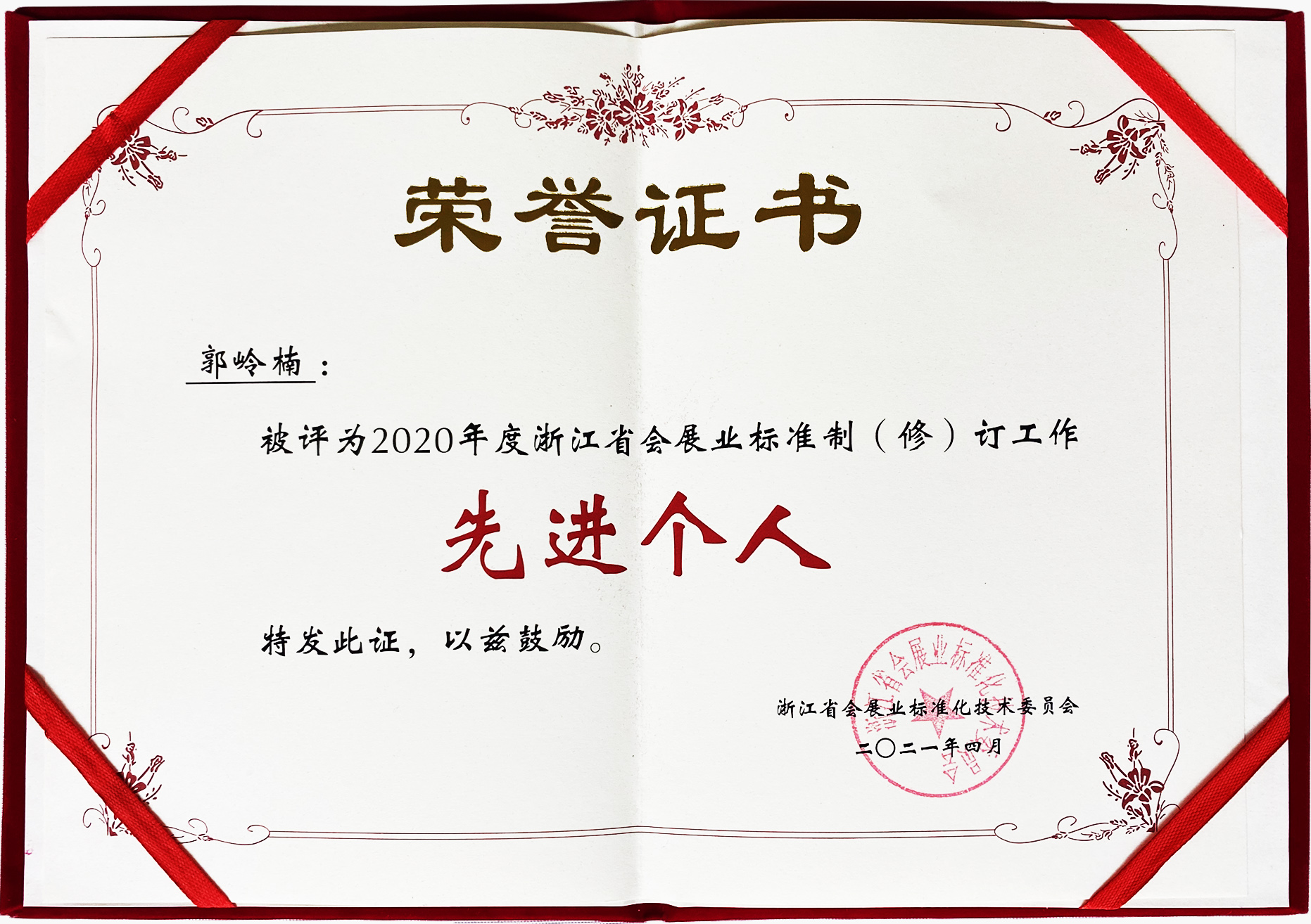 被評(píng)為2020年度浙江省會(huì)展業(yè)標(biāo)準(zhǔn)制(修)訂工作先進(jìn)個(gè)人。